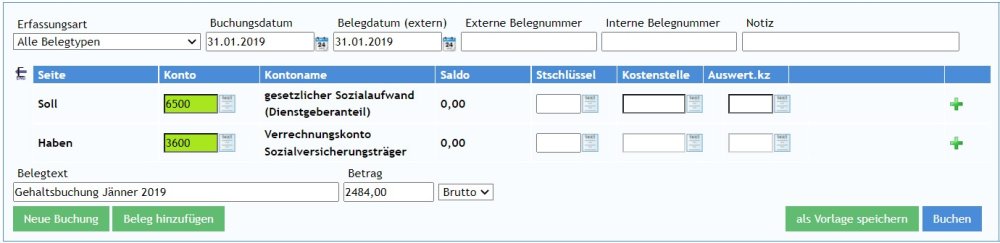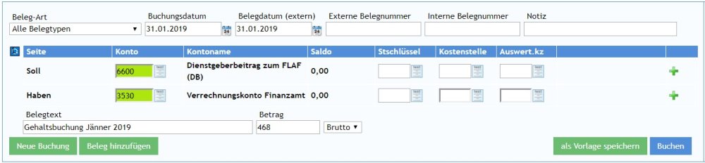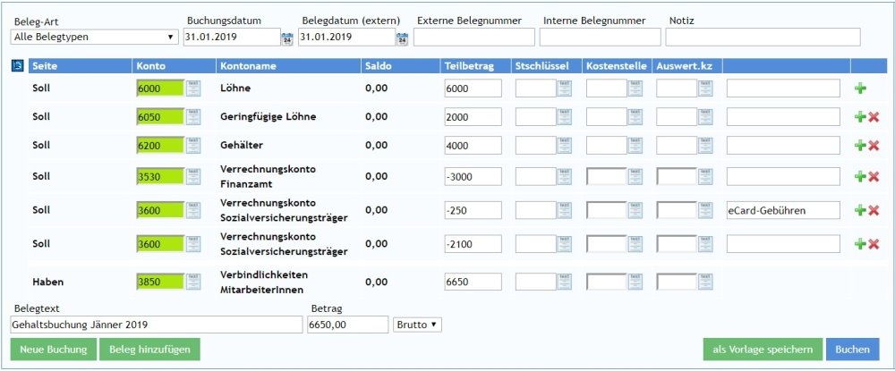 Buchungen anhand des Beleges aus der Lohnabrechnung